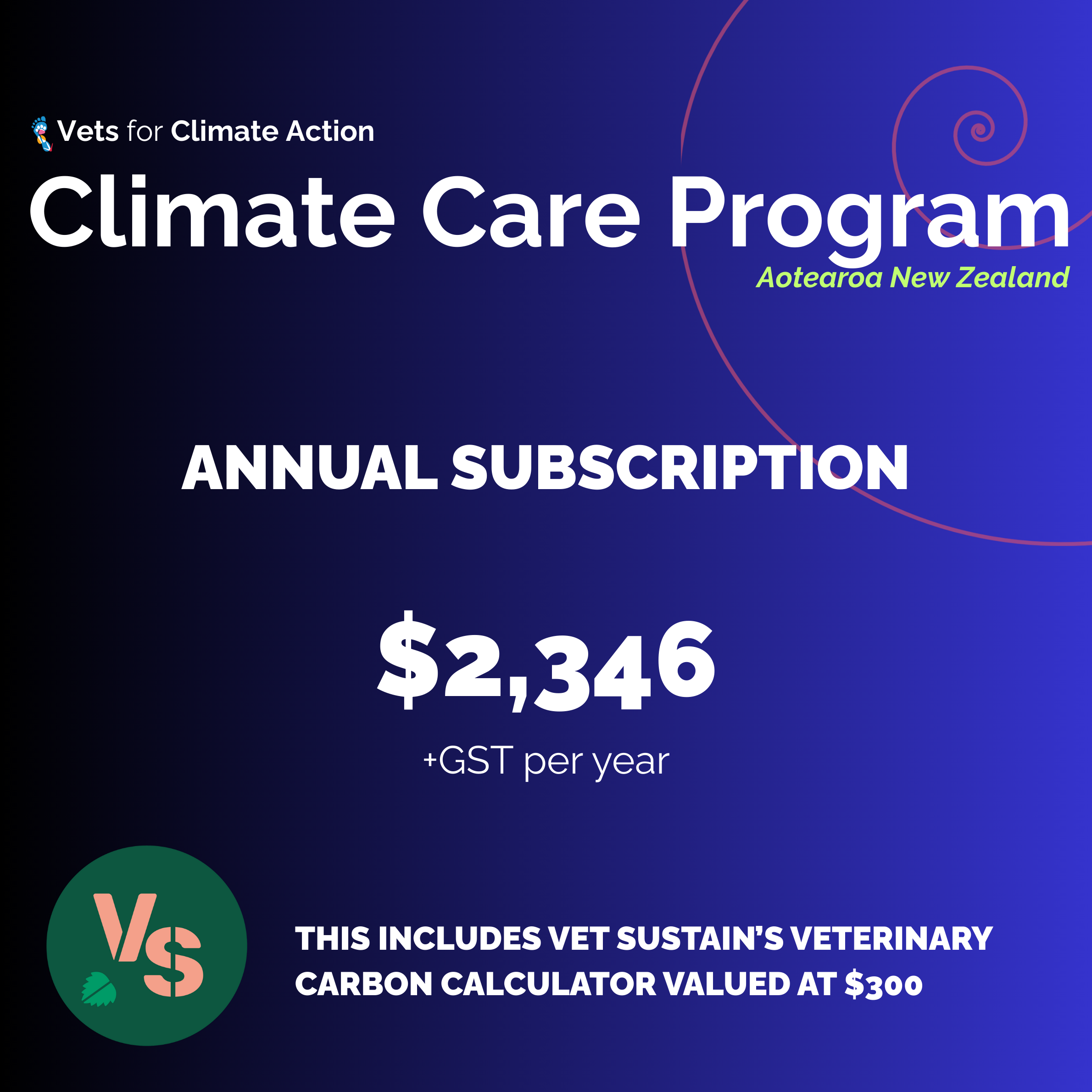 Your subscription includes access to Vet Sustain's Veterinary Carbon Calculator, developed specifically for New Zealand practices.